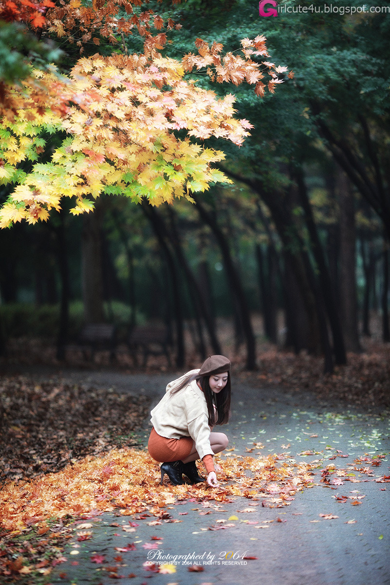 Park Hyun Sun looking very cute in an Autumn set wearing a orange sweater dress, ivory sweater, brown beret, and black ankle boots. I am quite liking the cute look instead of her usual sexy look. Enjoy ^^~
